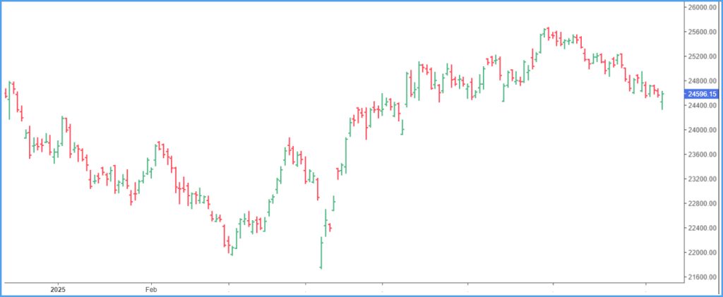 According to Nifty charts, Nifty index Closed today at 24,596 the key support level for Nifty is placed at 24,540,24,470 followed by 24,420 if the index moves up, key resistance levels to watch out for are 24,660,24,720 and 24,780.