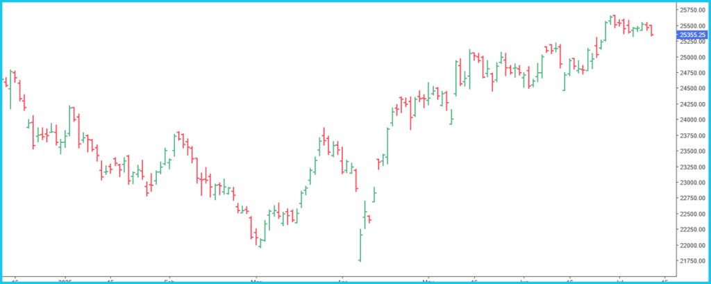 According to Nifty charts, Nifty index Closed today at 25,355 the key support level for Nifty is placed at 25,280,25,230 followed by 25,170 if the index moves up, key resistance levels to watch out for are 25,410,25,470 and 25,520.