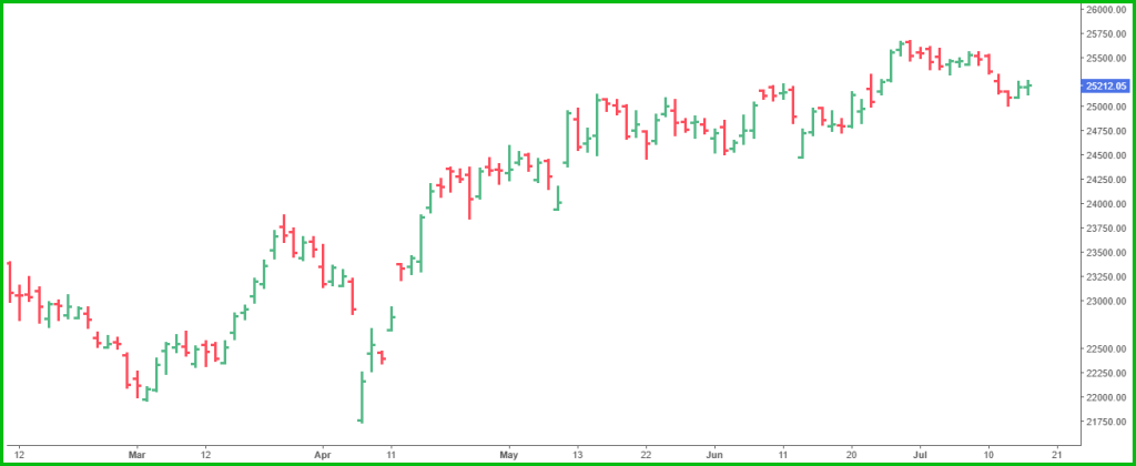 According to Nifty charts, Nifty index Closed today at 25,212 the key support level for Nifty is placed at 25,170,25,110 followed by 25,070 if the index moves up, key resistance levels to watch out for are 25,270,25,320 and 25,380.